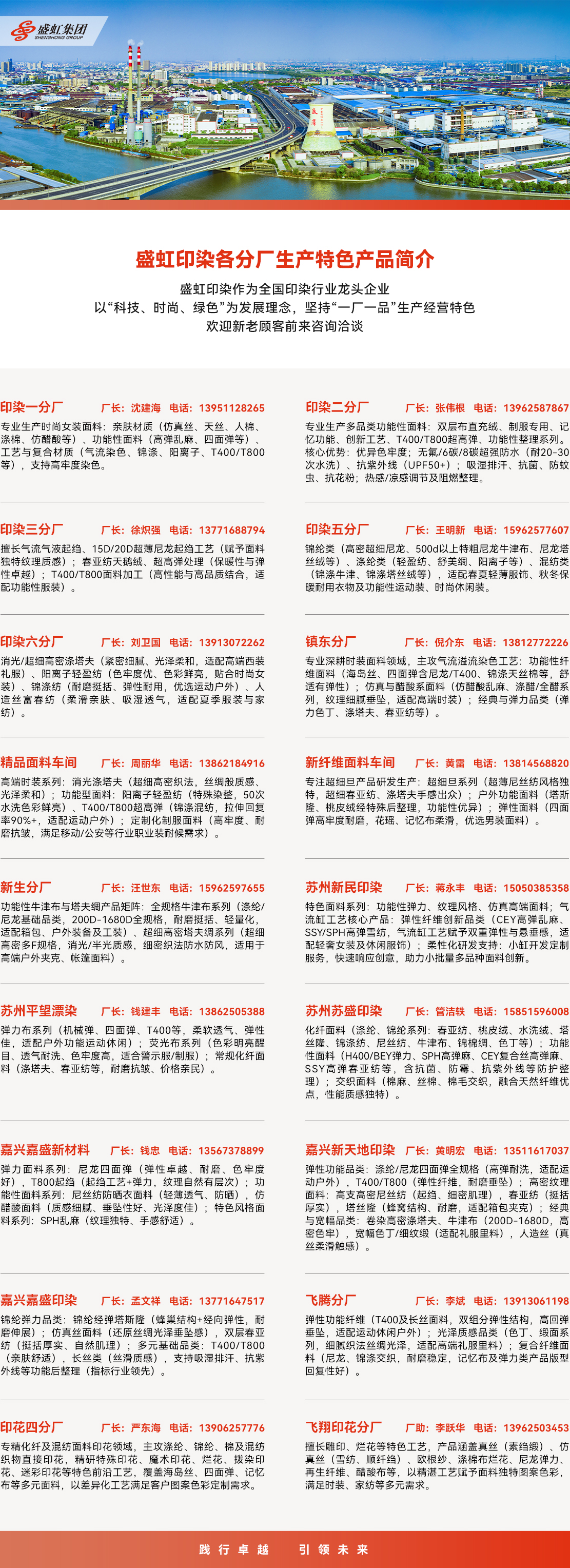 掌握超细纤维、记忆纤维、生物基PTT纤维、再生纤维、绿色智慧印染等核心工艺技术,在行业处于领先地位。瞄准功能纤维、高端用纤维材料及纺织品等关键共性技术进行攻关,引领纺织新材料产业高质量发展。