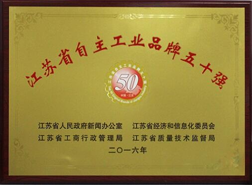 ——盛虹荣获2015年度“江苏省自主工业品牌五十强”
