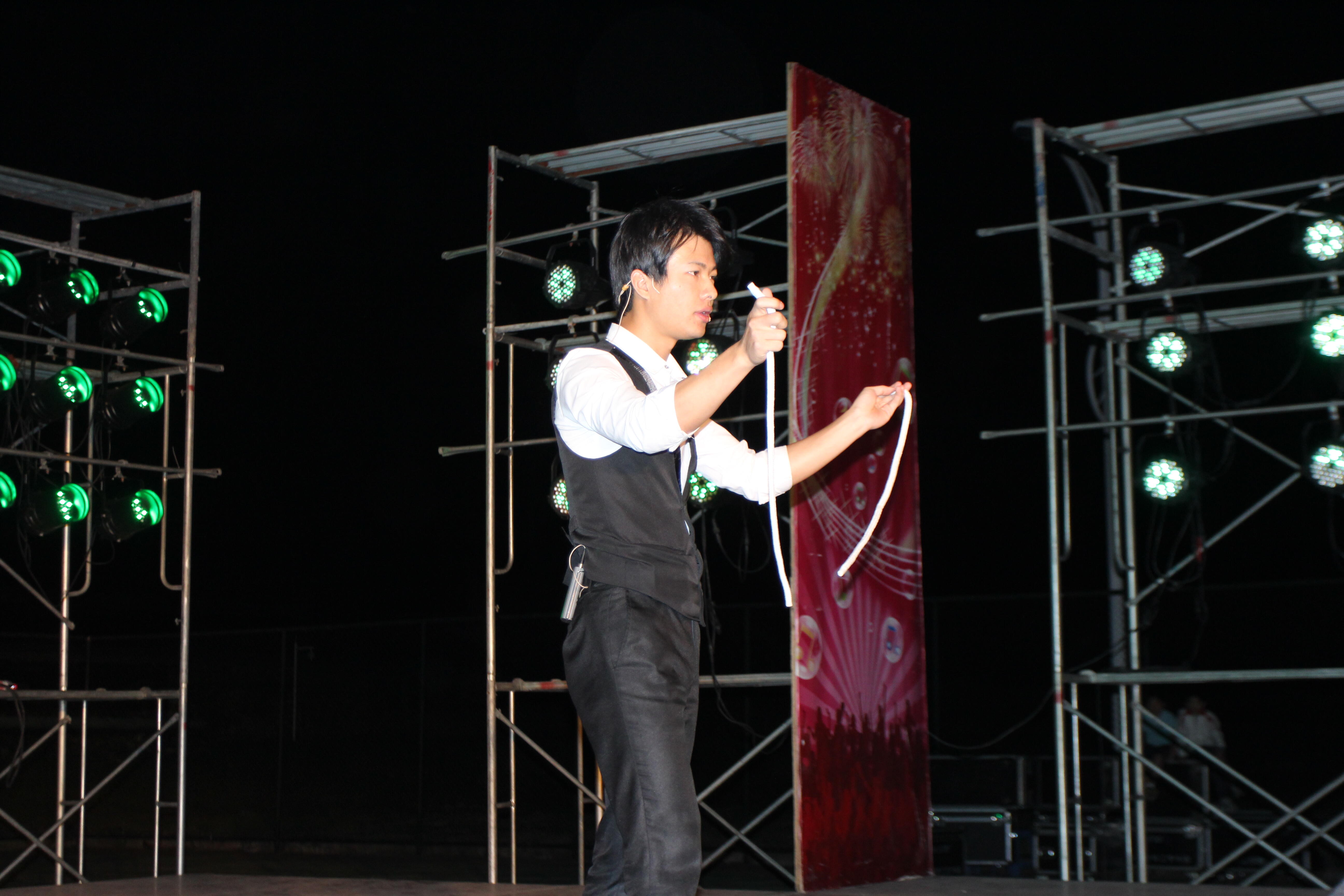 区职工艺术团成员国俊展现了他的“梦幻千手”,令人咋舌的移动纸牌游戏和双绳合一效果,干净利落不留痕迹,看得大家目瞪口呆。