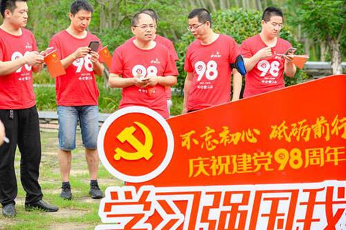 上百名党员齐聚潜龙渠公园,以徒步的方式纪念中国共产党建党98周年。活动现场,党员们重温入党誓词、传递红色风采、同唱祖国赞歌,通过线上和线下相结合的形式,展开了一场红色主题的党员教育活动。