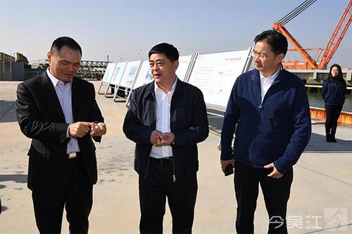 王庆华首先来到位于连云港徐圩新区的盛虹石化液体化工码头,现场察看项目进展情况,了解盛虹炼化一体化项目推进情况。